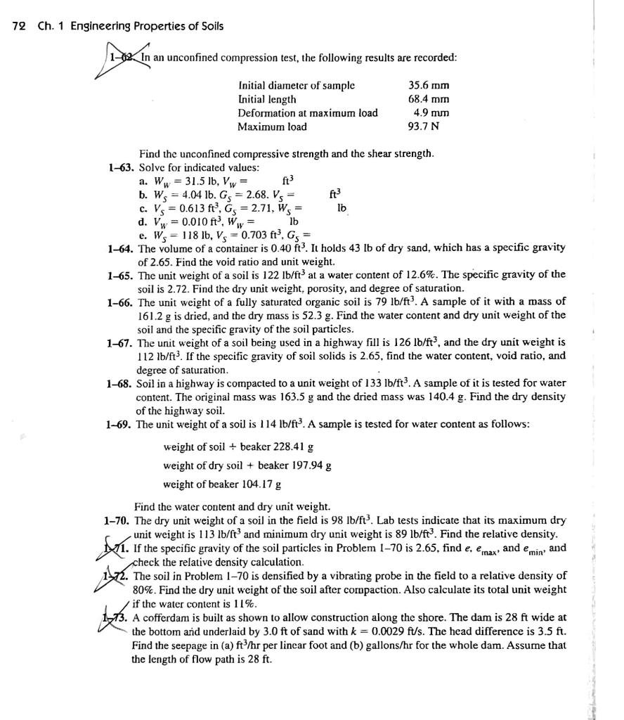 Solved 72 Ch 1 Engineering Properties Of Soils In An Chegg Com